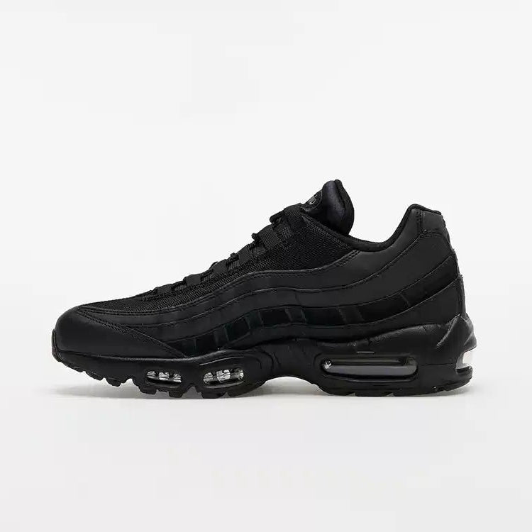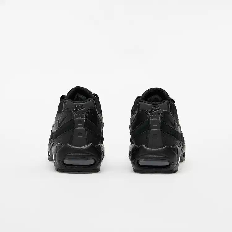 Το Nike Air Max 95 Essential Triple Black 2020/2023 αποκαλύφθηκε αρχικά ως ένα από τα μοντέλα Nike Air Max 95 πάνινα παπούτσια της Nike τον Ιανουάριο του 2020. Το Nike Air Max 95 Essential Triple Black 2020/2023 είναι ντυμένο με μαύρο σε μαύρο χρώμα. Το sneaker διαθέτει μαύρο δικτυωτό επάνω μέρος πάνω από μαύρη δερμάτινη βάση. Το επάνω μέρος της μαύρης γλώσσας διαθέτει μια λεπτομέρεια στην ετικέτα “air max”. Ολοκληρώνει τη σχεδίαση η μαύρη σόλα από καουτσούκ με μονάδες Air Max τοποθετημένες στη φτέρνα και στο μπροστινό μέρος για επιπλέον άνεση. Η μαύρη εξωτερική σόλα από καουτσούκ έχει μοτίβο για μέγιστη πρόσφυση.